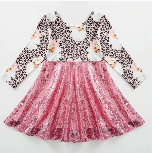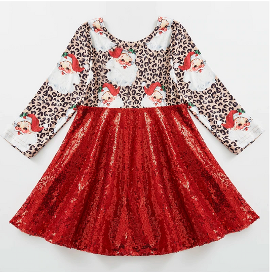 Pink Leopard Santa Long Sleeve Sweatshirt